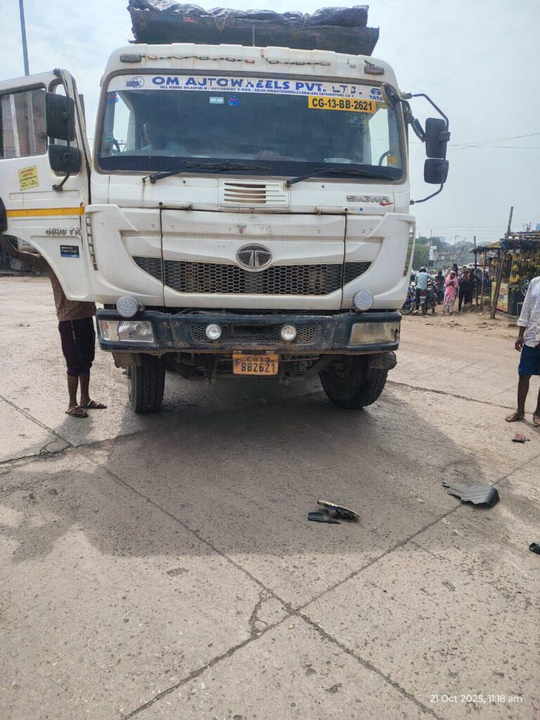 छातामुड़ा चौक में भयानक सड़क हादसा : हाईवा की चपेट में आने से मोटरसाइकिल सवार युवक की मौत ..