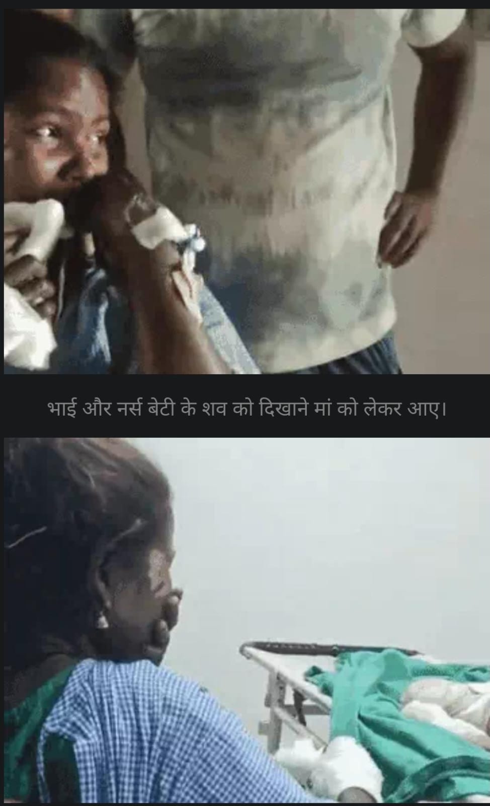 भाई और नर्स बेटी के शव को दिखाने मां को लेकर आए।