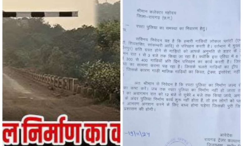 ट्रेलर कल्याण संघ ने कलेक्टर के नाम सौंपा ज्ञापन..2-3 दिन में पुलिया निर्माण शुरू नही होने पर प्लांटों के खिलाफ करेंगे आमरण अनशन..CSR मद से होना है गोवर्धनपुर पुलिया का निर्माण..